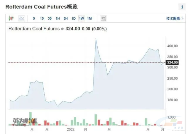 欧洲煤炭价格基准之一、鹿特丹煤炭期货价格走势 图片来源:英为财情