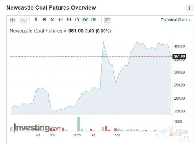 纽卡斯尔煤炭期货价格 图片来源:英为财情