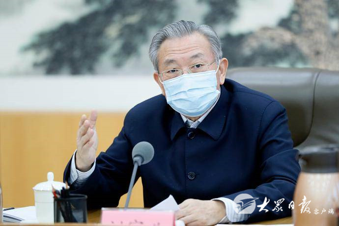 省委书记、省新型冠状病毒感染肺炎疫情处置工作领导小组组长刘家义主持会议并讲话,王书坚、孙立成、孙继业、刘强和领导小组成员参加会议。