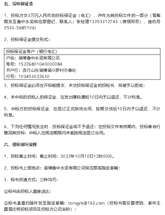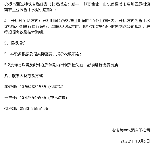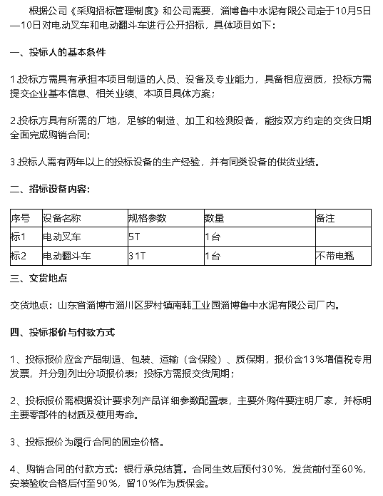 【招标公告】鲁中水泥